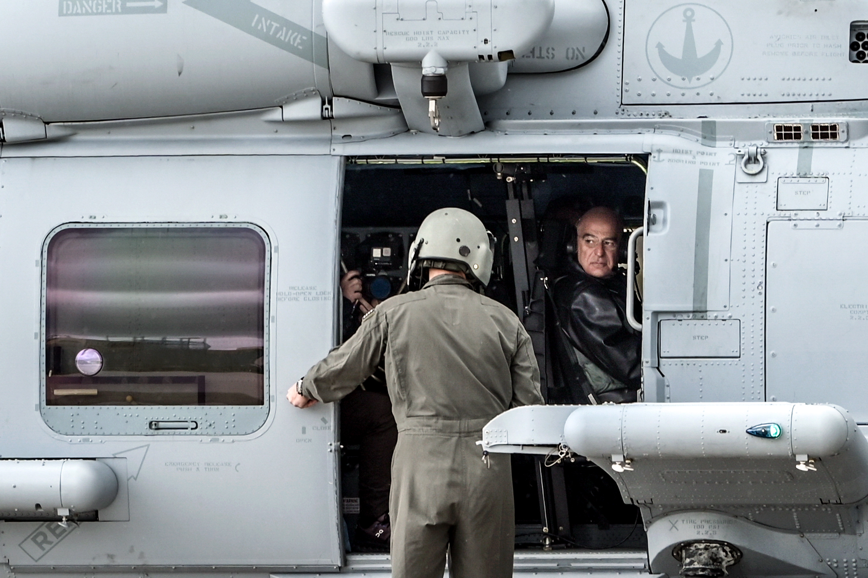 Αμέσως μετά ο πρωθυπουργός και ο υπουργός Εθνικής Άμυνας πέταξαν με ελικόπτερο MH-60 Romeo σε μία πτήση διάρκειας 20 λεπτών.