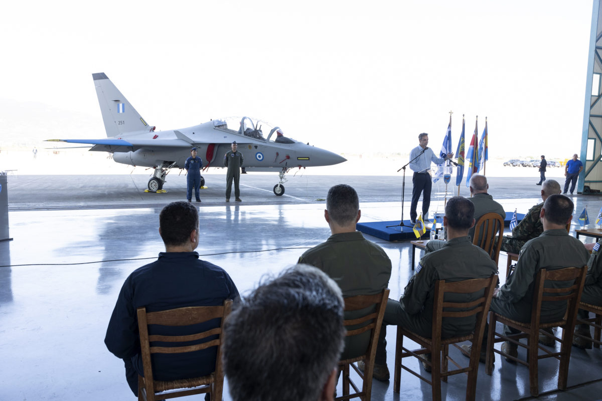 Εύχομαι, λοιπόν, κάθε επιτυχία στη νέα αποστολή της εκπαιδευτικής μας βάσης, εδώ, στην Καλαμάτα. Σύντομα θα προστεθούν και τα επόμενα αεροσκάφη. Και με το καλό πάντα επιτυχίες συνολικά στην Πολεμική μας Αεροπορία. Σας ευχαριστώ πολύ».