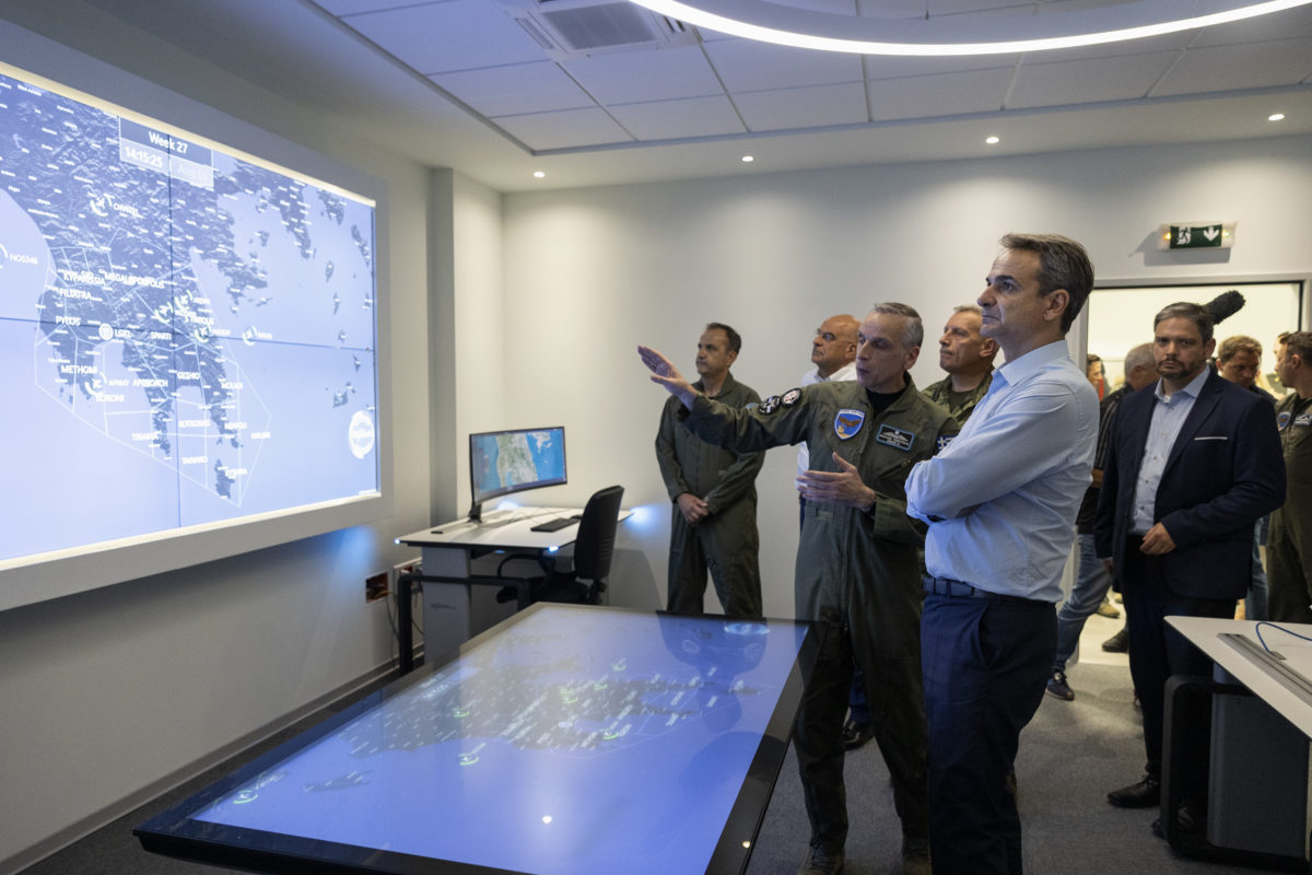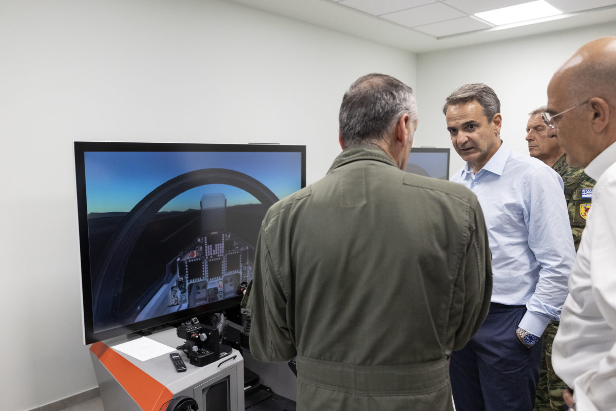 Στη συνέχεια, ο Κυριάκος Μητσοτάκης ξεναγήθηκε στις εγκαταστάσεις της μονάδας, όπου είχε την ευκαιρία να ενημερωθεί για τις δυνατότητες των εξομοιωτών υψηλής ευκρίνειας και μεγάλου όγκου δεδομένων, αλλά και για τα συστήματα αναλυτικής παρακολούθησης πτήσεων. Παράλληλα, συνομίλησε με τους Ισραηλινούς ειδικούς που υποστηρίζουν τους Έλληνες εκπαιδευτές για την αναβάθμιση των εκπαιδευτικών δυνατοτήτων της μονάδας.