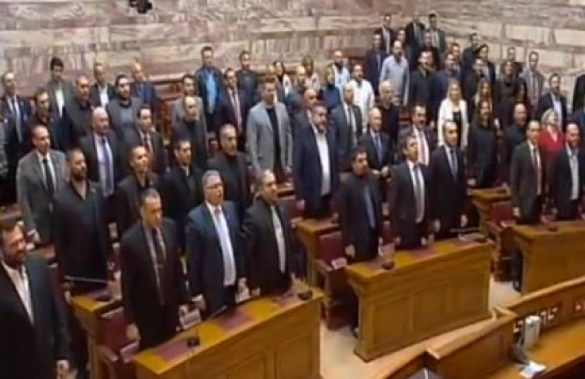 Εικόνες που δεν έχει ξαναδεί το κοινοβούλιο, εικόνες που ίσως και να μην αρμόζουν σε αίθουσα κοινοβουλίου διαδραματίσθηκαν στην αίθουσα της Γερουσίας όπου έγινε η συνεδρίαση της κοινοβουλευτικής ομάδας της Χρυσής Αυγής. Στην αναγγελία των ονομάτων των πεσόντων από τον Νικο Μιχαλολιάκο οι βουλευτές και τα στελέχη της Χρυσής Αυγής σε στάση προσοχής φώναζαν «αθάνατοι».