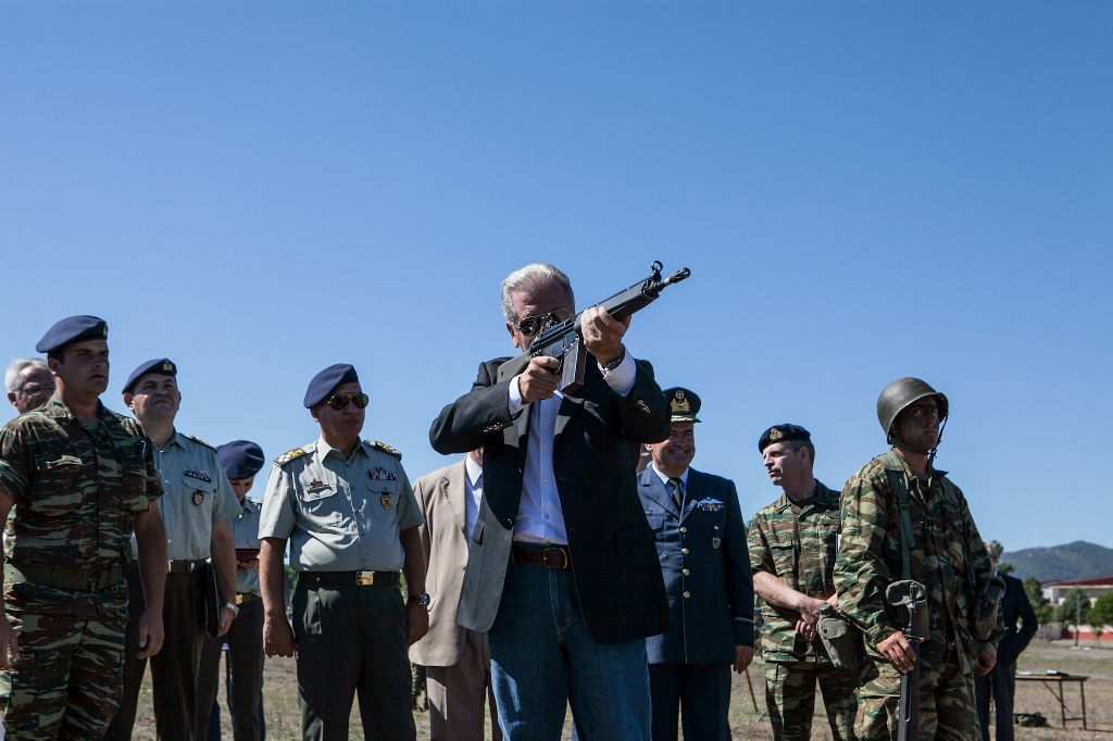 Νεοσύλλεκτος για μία μέρα ο υπουργός Εθνικής Άμυνας Δημήτρης Αβραμόπουλος. Επισκεπτόμενος την 124 Πτέρυγα Βασικής Εκπαίδευσης στην Τρίπολη,πέρασε από παντού. Ακόμη και από το πεδίο βολής όπου έκανε κι αυτός βολή με G 3.