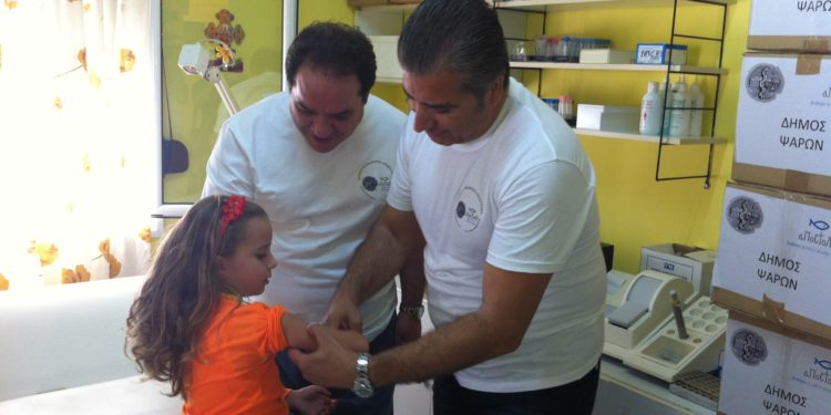 Το κλιμάκιο το πρωί εξέτασε κατοίκους των Ψαρών, ενώ παιδίατρος προχώρησε σε εμβολιασμούς των παιδιών.