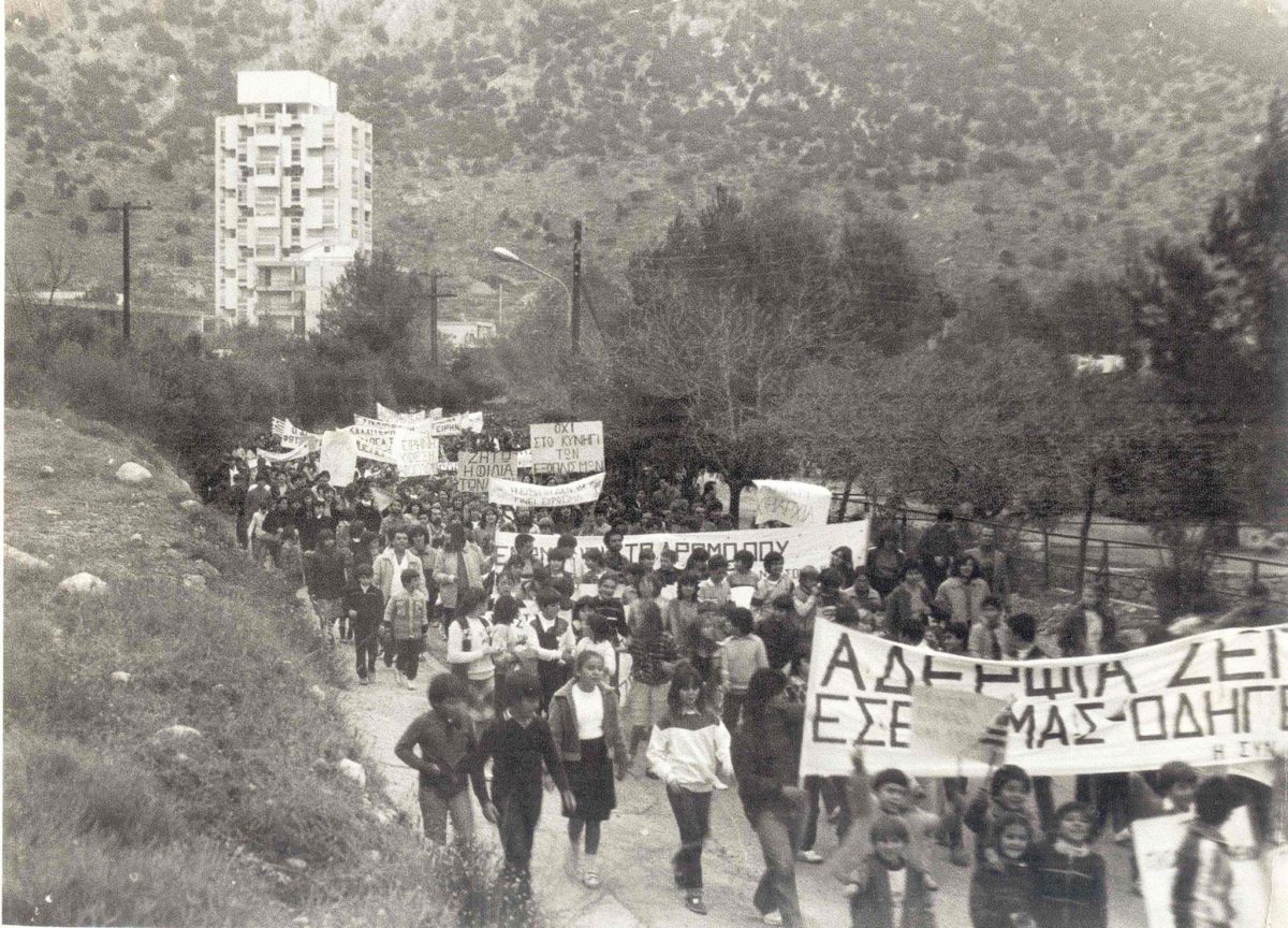 Μια από αυτές μας την θυμίζει με ανάρτησή του στο FACEBOOK ο λογοτεχνης Γιώργος Θεοχάρης, ‘έγινε, από τα Άσπρα Σπίτια Παραλίας Διστόμου προς την »αεροπορική βάση του ΝΑΤΟ, στην Αντίκυρα κάποια χρονιά τη δεκαετία του 1980». Εννοεί την Βάση Καυσίμων Αντικύρας της Πολεμικής Αεροπορίας που ανήκει στην ΔΑΚ και είχε γίνει , και είχε γίνει στα μέσα της δεκαετίας του ’50 με σχέδια και χρηματοδότηση ΝΑΤΟ.