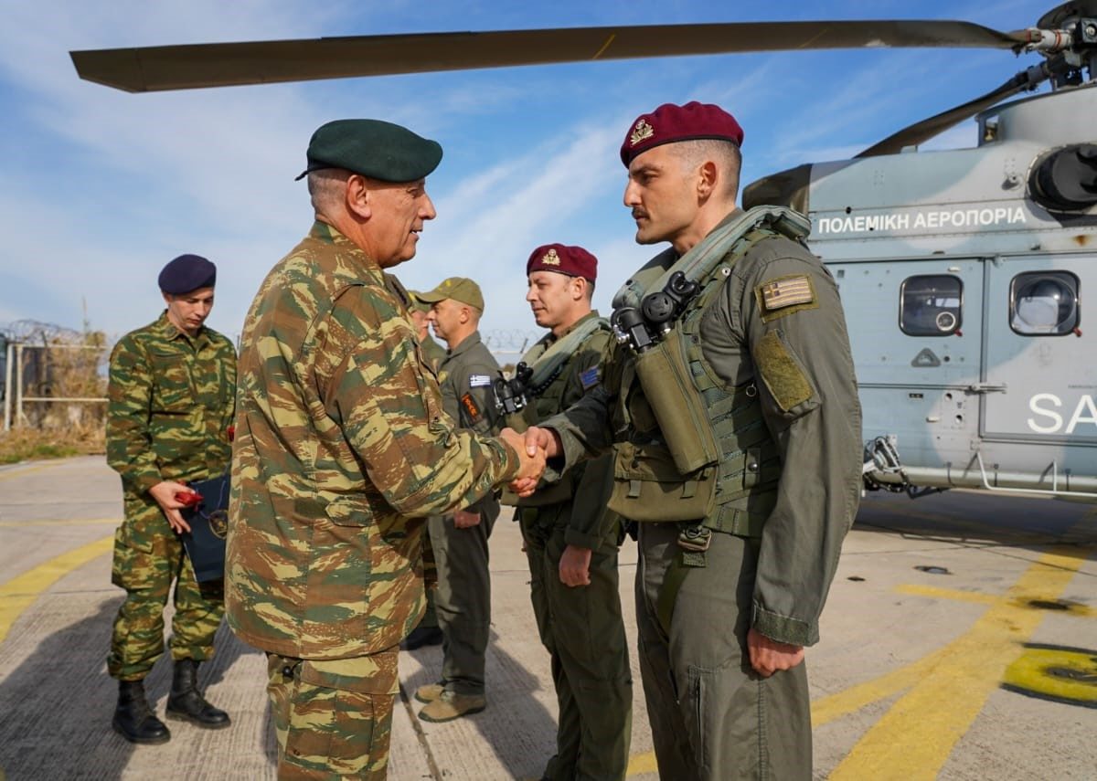 – Στην Χίο, με τα πληρώματα ετοιμότητας των Ελικοπτέρων της Πολεμικής Αεροπορίας και του Στρατού Ξηράς που σταθμεύουν στο Αεροδρόμιο της Χίου, καθώς και με τον Κυβερνήτη, τους Αξιωματικούς και το Πλήρωμα του Ταχέος Περιπολικού Κατευθυνόμενων Βλημάτων (ΤΠΚ) ΚΑΡΑΘΑΝΑΣΗΣ.