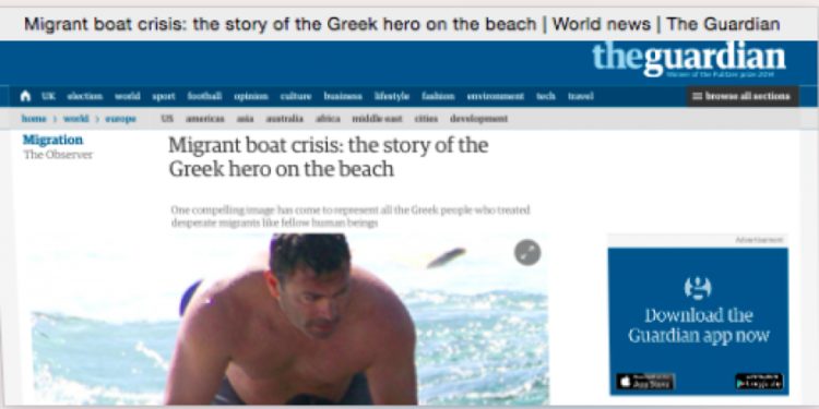 Η αυταπάρνηση του ΕΠΟΠ Λοχία Αντώνη Ντεληγιώργη, που διέσωσε 20 μετανάστες , στον Ζέφυρο της Ρόδου έχει συγκινήσει τους πάντες. Η πράξη του τράβηξε το ενδιαφέρον μιας από τις μεγαλύτερες εφημερίδες της Βρετανίας . Ο Guardian ήρθε σε επαφή με τον Έλληνα Λοχία ο οποίος και διηγήθηκε πως αποφάσισε να πέσει στη θάλασσα για να σώσει συνανθρώπους του.
