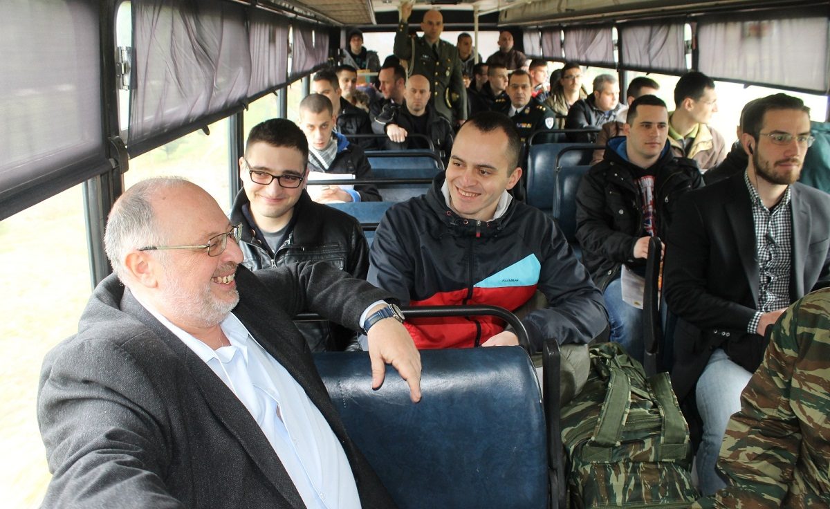 Χαιρέτισε, στην πύλη του Κέντρου, τους νέους που περίμεναν με τις αποσκευές τους για να μπουν στη διαδικασία κατάταξης. Ακολούθως επιβιβάστηκε μαζί τους στο λεωφορείο που τους παραλαμβάνει από την πύλη και τους μεταφέρει στο κτίριο όπου γίνονται οι διαδικασίες κατάταξης.