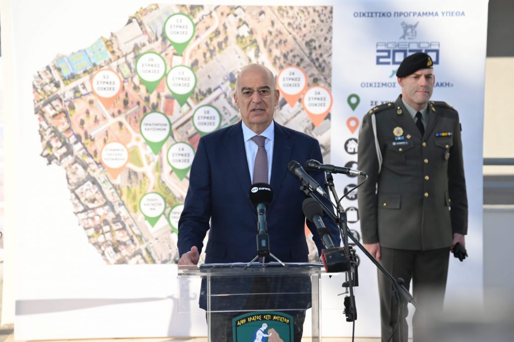 Μιλώντας για τα νέα διαμερίσματα, ο κ. Δένδιας υπογράμμισε ότι «αποτελούν κομμάτι του τεράστιου Οικιστικού Προγράμματος, το οποίο έχει ξεκινήσει, των 17.000 κατοικιών, που θα καλύψουν πλήρως τις ανάγκες των Ενόπλων Δυνάμεων».
