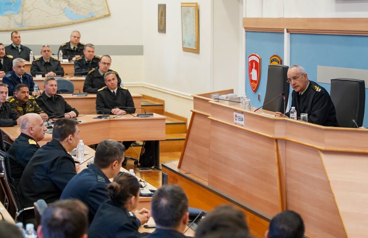 Κατά την ομιλία του ο Α/ΓΕΕΘΑ αναφέρθηκε στις γεωστρατηγικές εξελίξεις σε διεθνές και περιφερειακό επίπεδο, σε συνδυασμό με τη γεωπολιτική αξία της χώρας μας.