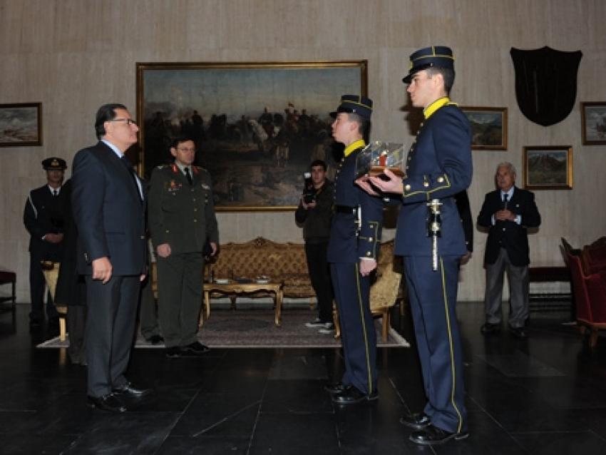 Η φωτογραφία είναι από τη Σχολή Ευελπίδων και από την παρουσία του ΥΕΘΑ Πάνου Παναγιωτόπουλου εκεί για την ορκομωσία των Ευέλπιδων. Είναι η στιγμή που του απονέμεται το ξιφίδιο του Εύελπι ως αναμνηστικό, ως δώρο ,ως αναγνώριση της ηγεσίας που ασκεί από τη θέση του στις Ένοπλες Δυνάμεις; Ποιος ξέρει…