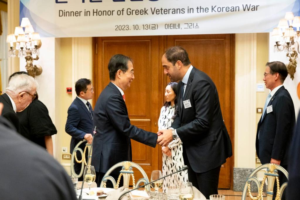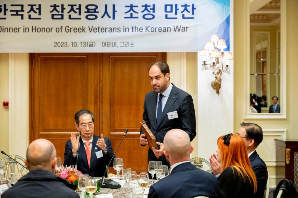 Ο ΥΦΕΘΑ Εθνικής Άμυνας Ιωάννης Κεφαλογιάννης παρέστη χτες, Παρασκευή 13 Οκτωβρίου 2023, στην κατάθεση στεφάνου από τον Πρωθυπουργό της Δημοκρατίας της Κορέας κ. Duck-soo Han στην μνήμη των Βετεράνων του Πολέμου της Κορέας και στη συνέχεια παρακάθησε στο δείπνο που παρέθεσε ο Κορεάτης Πρωθυπουργός προς τιμήν αυτών.