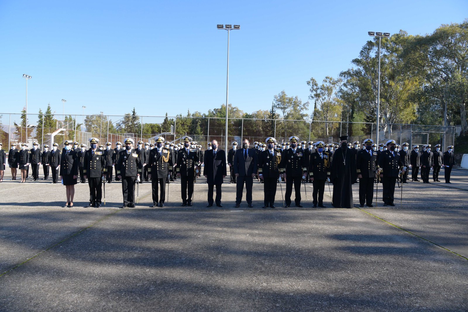 Στην τελετή που έλαβε χώρα στις εγκαταστάσεις της Σχολής Μονίμων Υπαξιωματικών Ναυτικού (ΣΜΥΝ), στο Ναυτικό Οχυρό Σκαραμαγκά, χοροστάτησε ο Μητροπολίτης Νικαίας κ. Αλέξιος, ενώ παρέστησαν επίσης ο Υφυπουργός Ναυτιλίας και Νησιωτικής Πολιτικής, κ. Κώστας Κατσαφάδος, ο Α’ Υπαρχηγός του Λ.Σ.-ΕΛ.ΑΚΤ. Αντιναύαρχος Λ.Σ. Ισάκογλου Νικόλαος, ο Β’ Υπαρχηγός του Λ.Σ.-ΕΛ.ΑΚΤ. Αντιναύαρχος Λ.Σ. Αλεξανδράκης Γεώργιος, καθώς και Ανώτατοι και Ανώτεροι Αξιωματικοί του Πολεμικού Ναυτικού και του Λιμενικού Σώματος – Ελληνικής Ακτοφυλακής.