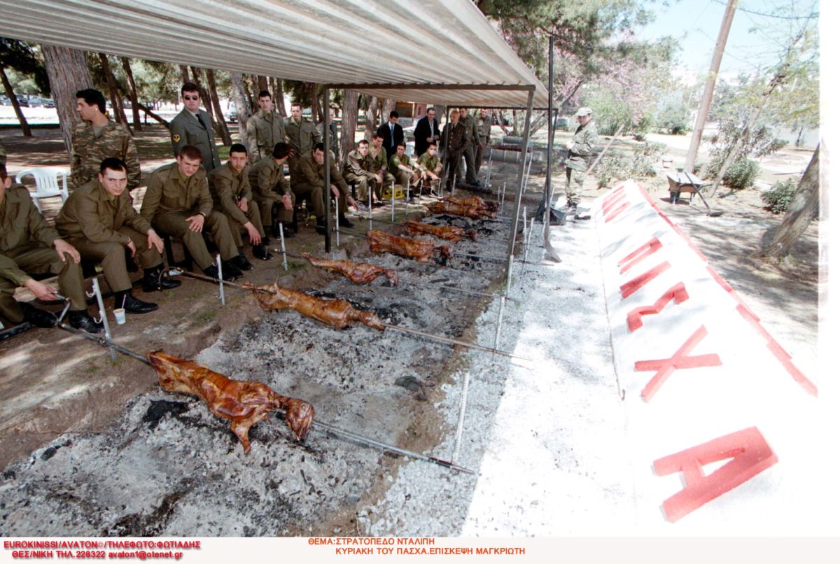Πάσχα των Ελλήνων. Εορτή μοναδική που συνδυάζεται και με την άνοιξη γι΄ αυτό την κάνει ακόμη πιο ευχάριστη. Μετά από τη νηστεία και τη Μεγάλη Εβδομάδα ,ξημερώνει η Κυριακή με το αρνί ,το κοκορέτσι κι όλα τα σχετικά. Όμως για κάποιους ο Γολγοθάς συνεχίζεται. Και για να ακριβολογούμε…κορυφώνεται την Κυριακή του Πάσχα! Ποιοι είναι αυτοί ; Μα οι στρατιώτες,ναύτες και σηνίτες που υπηρετούν τη θητεία τους κι έχουν …το προνόμιο να υποδεχτούν την Κυριακή του Πάσχα “τον κ.υπουργό”, τους Αρχηγούς ή όποιον άλλο παράγοντα και αξιωματούχο κάνει …το πέρασμά του από τη μονάδα τους! Εφιάλτης που έχει αρχίσει πολλές ημέρς πριν! Το στρατόπεδο πρέπει να λάμπει. Ο εκνευρισμός του διοικητή δεδομένος,όπως και το απίστευτο τρέξιμο για τους στρατεύσιμους. Κι όλα αυτά για να βγουν οι φωτογραφίες και τα πλάνα των επισήμων που κάθονται για μερικά δευτερόλεπτα δίπλα στους κατάκοπους στρατεύσιμους που γυρνάνε μάλλον απρόθυμα το αρνί! Τόσο όσο χρειάζεται για το κλικ του φωτογράφου.