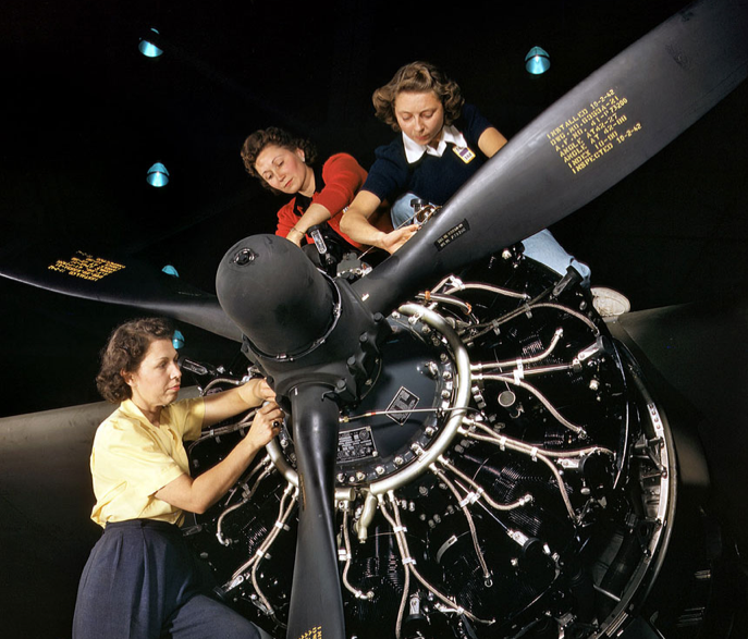 Στις φωτογραφίες οι γυναίκες κατασκευάζουν εξαρτήματα για βομβιστικά αεροπλάνα.