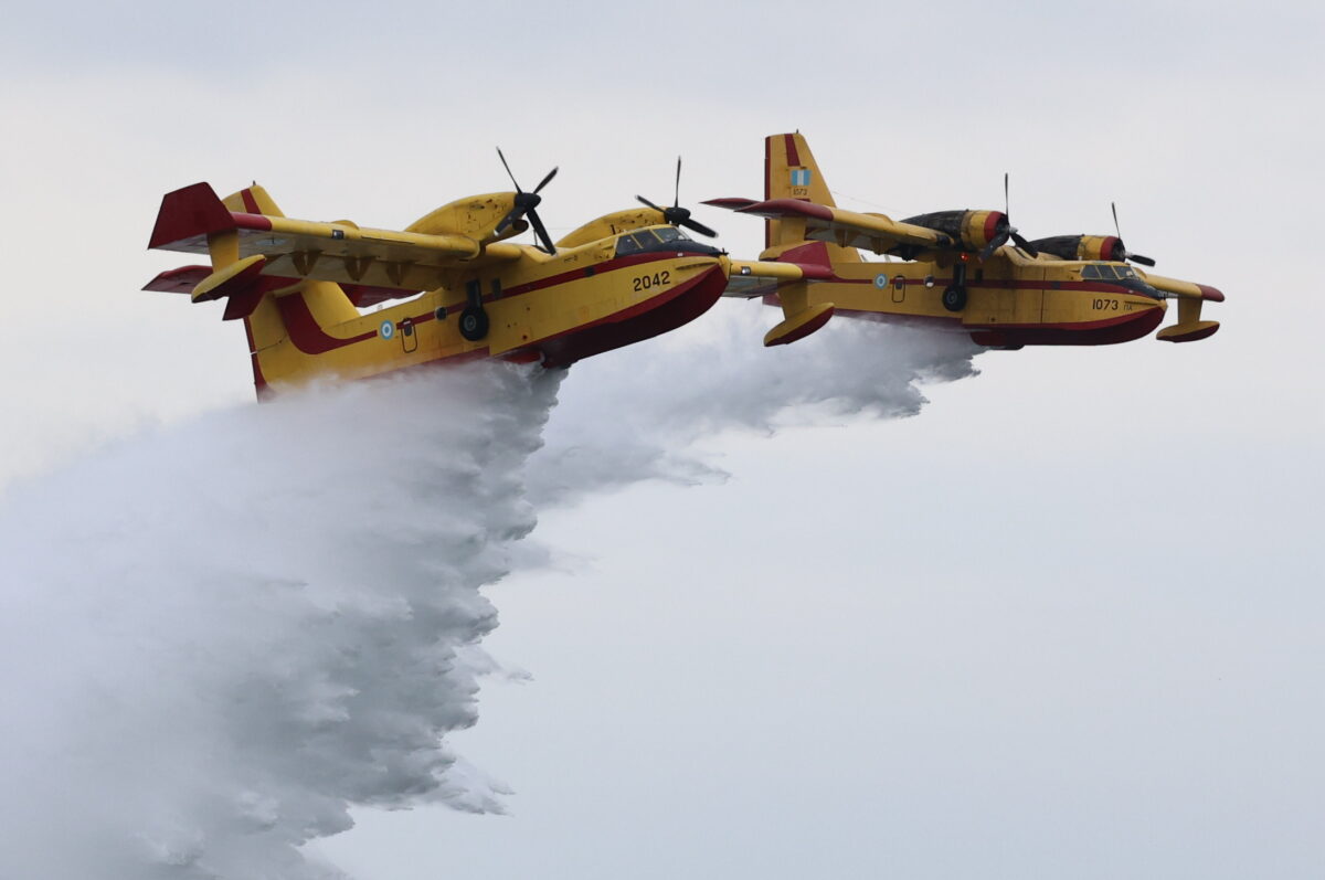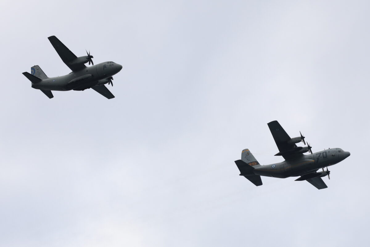Το αεροπορικό σόου έκλεισαν με εντυπωσιακή εμφάνιση τα πυροσβεστικά αεροσκάφη Canadair που έκαναν και επίδειξη ρίψης νερού σε χαμηλό ύψος, η διέλευση των μεταγωγικών αεροσκαφών C-130 και C-27 με τον επετειακό διάκοσμό τους και οι διελεύσεις σε σχηματισμό όλων των μαχητικών της ΠΑ της χώρας, περάσματα που συνοδεύτηκαν από χειροκροτήματα και χιλιάδες φωτογραφικά πλάνα και βίντεο.