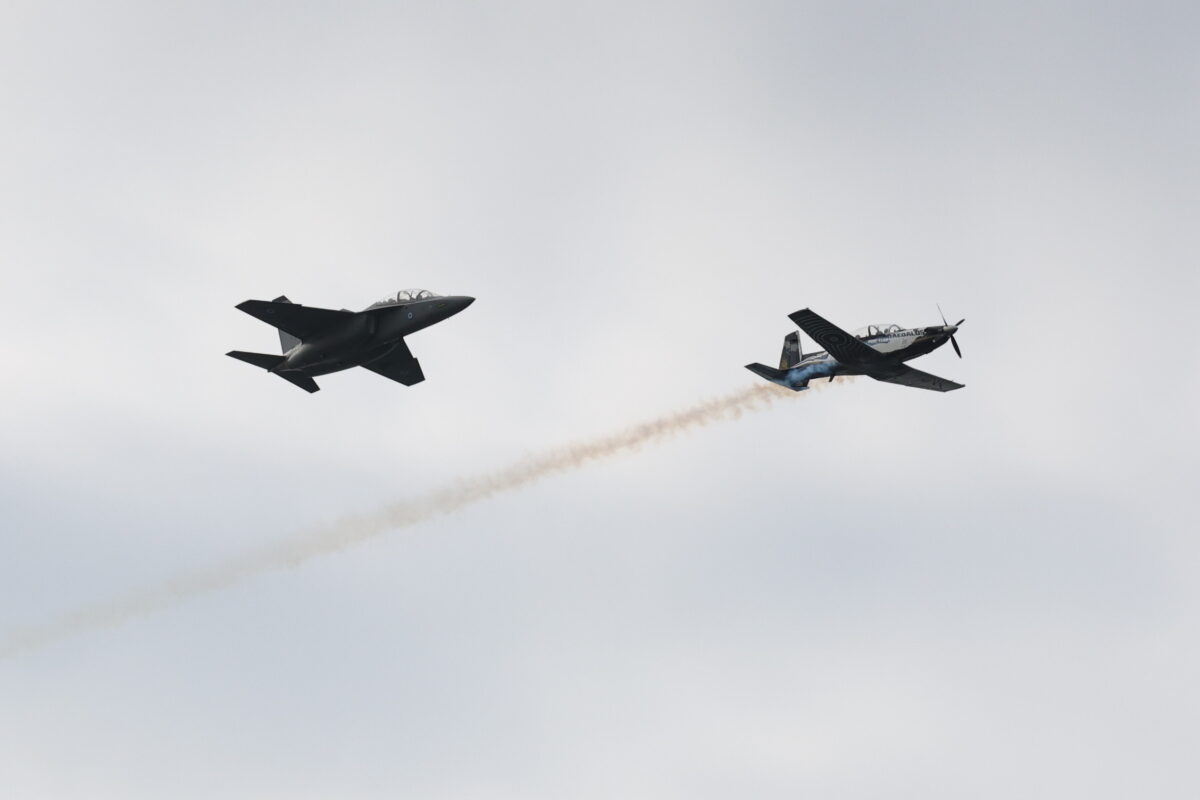 Το εκπαιδευτικό δίδυμο της ΠΑ, το ταχύ τζετ εκπαιδευτικό αεροσκάφος Aermacchi Μ-346 που πέταξε με το Τ-6Α «Δαίδαλος», άνοιξαν το αεροπορικό σόου και στη συνέχεια η παραλία μετατράπηκε σε έναν δυναμικό καμβά ζωγραφικής από τις διελεύσεις αεροσκαφών της Πολεμικής Αεροπορίας με μαχητικά της Πολιτικής Αεροπορίας, τους Egyptian Silver Stars με τα 10 ευέλικτα εκπαιδευτικά jet αεροσκάφη K-8E Karakorum, τους εντυπωσιακούς σχηματισμούς με όλους τους τύπους των μαχητικών της ΠΑ, το αληθοφανές, δυναμικό dogfight ανάμεσα σε αεροσκάφος Dassault Rafale F3R και F-16, την πτήση όλων των μαχητικών της ΠΑ όπως και του ΑΣΕΠΕ αεροσκάφους Erieye EMB-145 AEW&C, τα ντουέτα που απελευθέρωναν φωτοβολίδες στις κλειστές μανούβρες τους.