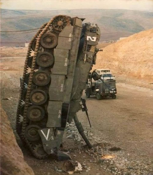 Είναι λίγο δύσκολο να φανταστούμε πως το κατάφερε ο οδηγός του άρματος μάχης της φωτογραφίας. «Πάρκαρε» το άρμα …κατακόρυφα! Κι απ΄ ότι φαίνεται από τη φωτογραφία…θέσεις άδειες υπήρχαν πολλές. Το βέβαιο είναι ότι αρχηγός πληρώματος και ο διοικητής του δεν θα πρέπει να είναι ενθουσιασμένοι μαζί του.