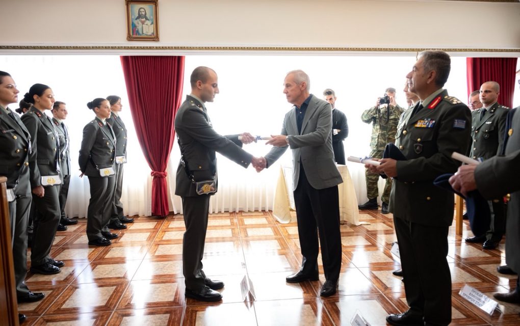 Στην τελετή αποφοίτησης των Ανθυπολοχαγών της ΣΕΥ παρέστη και ο υφυπουργός Εθνικής Άμυνας, Θανάσης Δαβάκης.