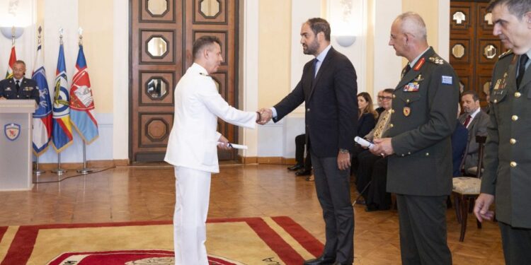 Ο Υφυπουργός Εθνικής Άμυνας (ΥΦΕΘΑ) Γιάννης Κεφαλογιάννης απένειμε σήμερα, Τρίτη 10 Σεπτεμβρίου 2024, ως εκπρόσωπος του Προέδρου της Κυβέρνησης, τα πτυχία στους αποφοίτους σπουδαστές της 14ης Εκπαιδευτικής Σειράς Φοίτησης Εξ’ Αποστάσεως της Σχολής Εθνικής Άμυνας (ΣΕΘΑ).