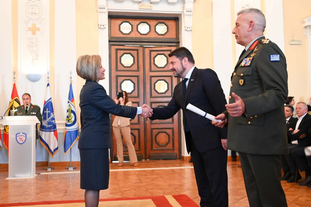 Ο Υφυπουργός Εθνικής Άμυνας (ΥΦΕΘΑ) κ. Νικόλαος Χαρδαλιάς, εκπροσωπώντας τον Πρόεδρο της Ελληνικής Κυβέρνησης, απένειμε σήμερα Παρασκευή 21 Απριλίου 2023, παρουσία του Αρχηγού ΓΕΕΘΑ Στρατηγού Κωνσταντίνου Φλώρου, τα πτυχία στους απόφοιτους σπουδαστές της 75ης Εκπαιδευτικής Σειράς Φοίτησης δια Φυσικής Παρουσίας της Σχολής Εθνικής Άμυνας.