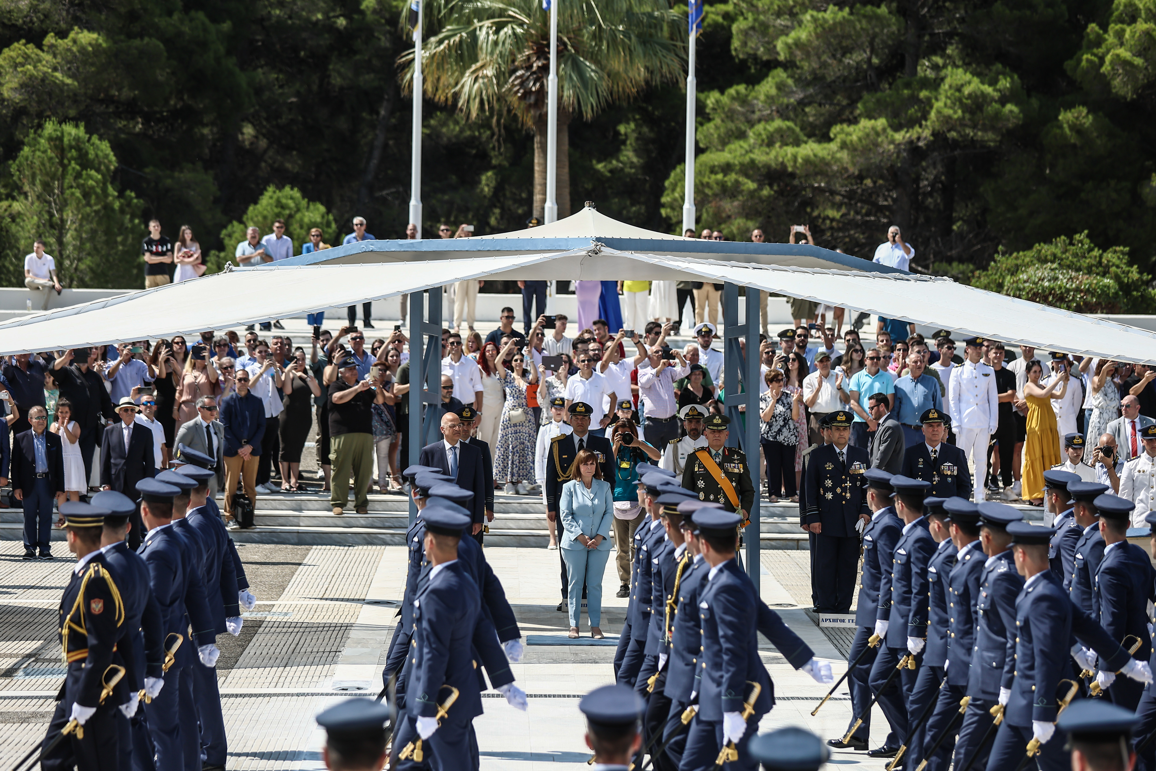 Τα ξίφη στους νέους Αξιωματικούς της Πολεμικής Αεροπορίας επέδωσε η Πρόεδρος της Δημοκρατίας κ. Κατερίνα Σακελλαροπούλου.