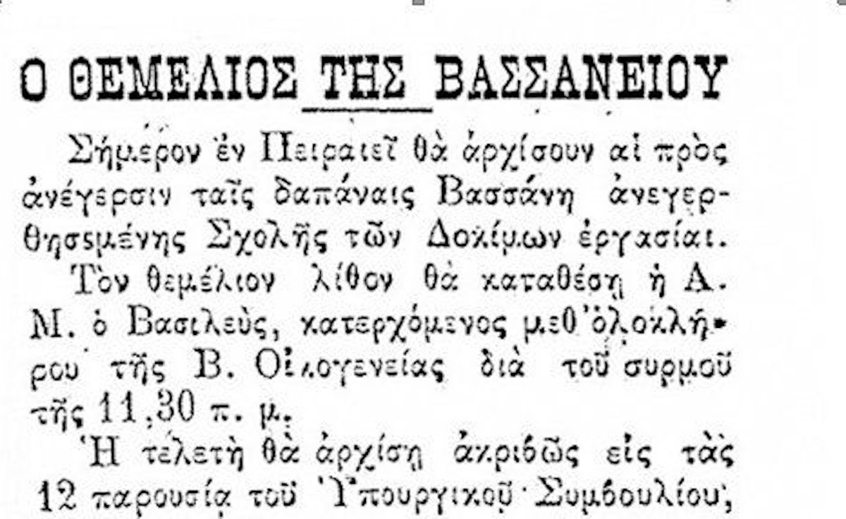 Μάλιστα τον θεμέλιο λίθο κατέθεσε ο Βασιλιάς Γεώργιος «κατερχόμενος μεθ’ ολοκλήρου της Βασιλικής Οικογενείας δια του συρμού…».