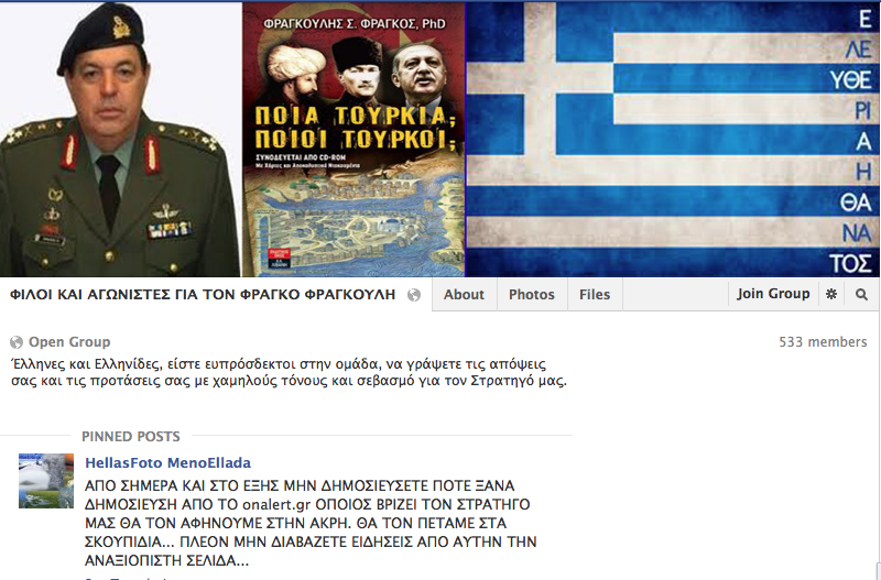 Οι φανατικοί “Φραγκικοί” κήρυξαν …πόλεμο στο Onalert, θεωρώντας ότι “πολεμάμε” τον πρώην Α/ΓΕΣ .Ευγενέστατοι όπως όλοι οι φανατικοί προτρέπουν μ΄ ένα πολύ …ωραίο μήνυμά τους κάτι σαν …εμπάργκο των “φανατικών” του Φράγκου εναντίον του Onalert στο διαδίκτυο. Ευχαριστούμε θερμά για την απρόκλητη διαφήμιση.