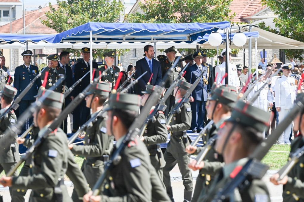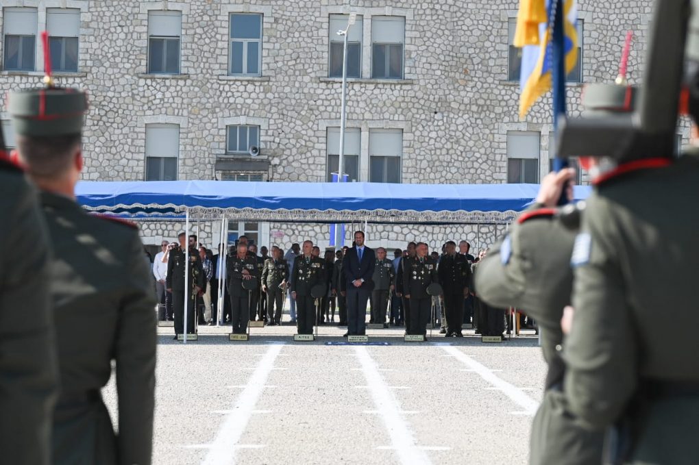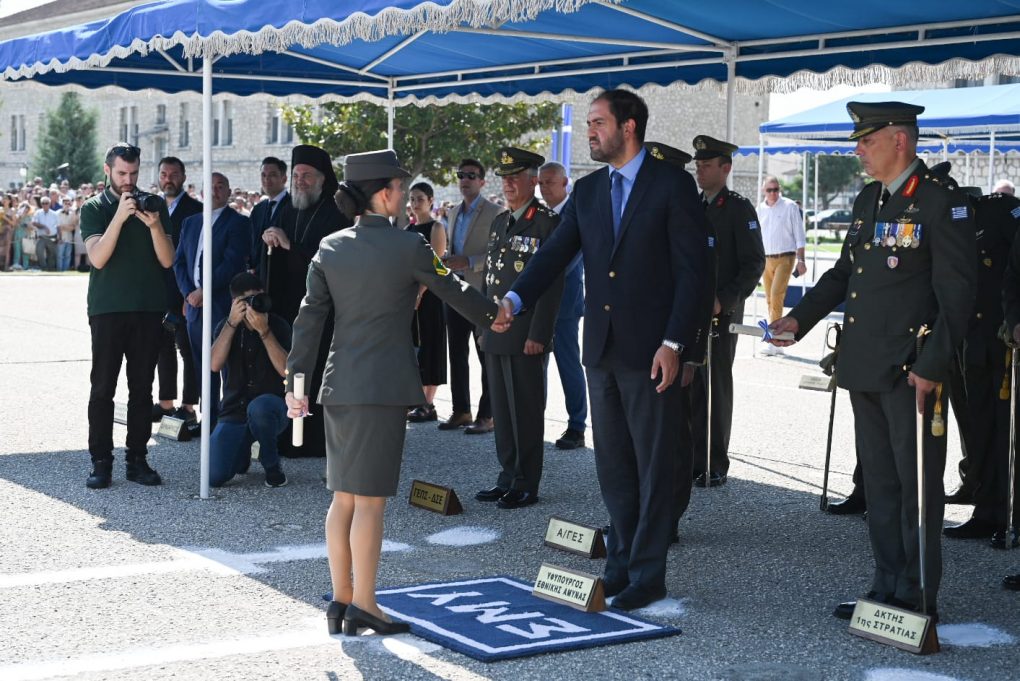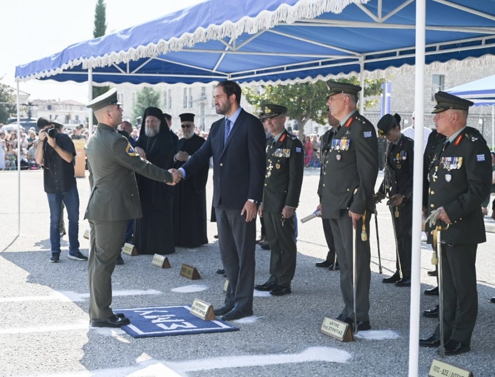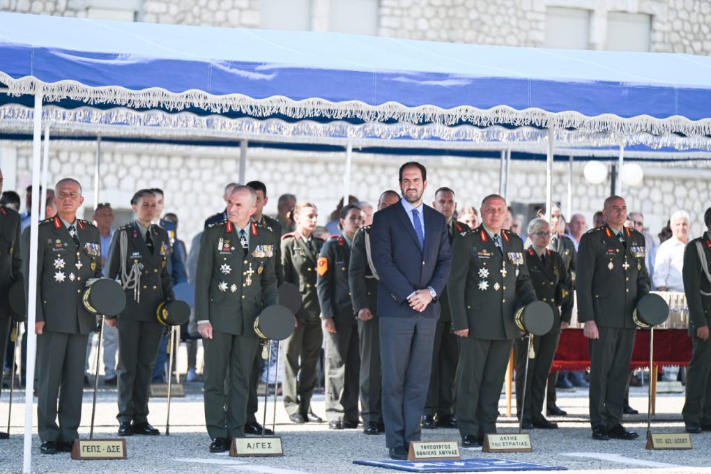 «Με ιδιαίτερη υπερηφάνεια και χαρά απένειμα σήμερα τα πτυχία στην ορκωμοσία των νέων Μονίμων Λοχιών του Στρατού Ξηράς, στη Σχολή Μονίμων Υπαξιωματικών. Όλων εκείνων που θα στελεχώσουν κρίσιμες ειδικότητες και θα αποτελέσουν την αιχμή του δόρατος στην προάσπιση της εδαφικής ακεραιότητας και των δικαίων της Πατρίδας μας, καθώς και στην ευρύτερη προσφορά στο κοινωνικό σύνολο. Θα ήθελα να συγχαρώ τον Διοικητή και το προσωπικό της Σχολής, διότι παραδίδουν στον Ελληνικό Στρατό άριστα εκπαιδευμένα στελέχη, καθώς και τις οικογένειες των νέων Μονίμων Λοχιών που εμπιστεύτηκαν στις Ένοπλες Δυνάμεις τα παιδιά τους. Αξίζουν θερμά συγχαρητήρια στους ορκισθέντες για την επιτυχή ολοκλήρωση των σπουδών τους. Τους εύχομαι καλή σταδιοδρομία και είμαι βέβαιος ότι θα επιτελέσουν στο έπακρο το καθήκον τους. Θα ήθελα επίσης να τους προτρέψω να συνεχίσουν να εκπαιδεύονται διαρκώς γύρω από το αντικείμενό τους και να τους διαβεβαιώσω ότι οι κόποι τους θα ανταμειφθούν. Η πολιτική ηγεσία του Υπουργείου Εθνικής Άμυνας, πάντα σε αγαστή συνεργασία με την στρατιωτική, θα βρίσκεται στο πλευρό των γυναικών και των ανδρών των Ενόπλων Δυνάμεων, προκειμένου η καθημερινότητά τους να είναι η καλύτερη δυνατή και να μπορούν να εκπληρώνουν απερίσπαστοι την υψηλή αποστολή τους».