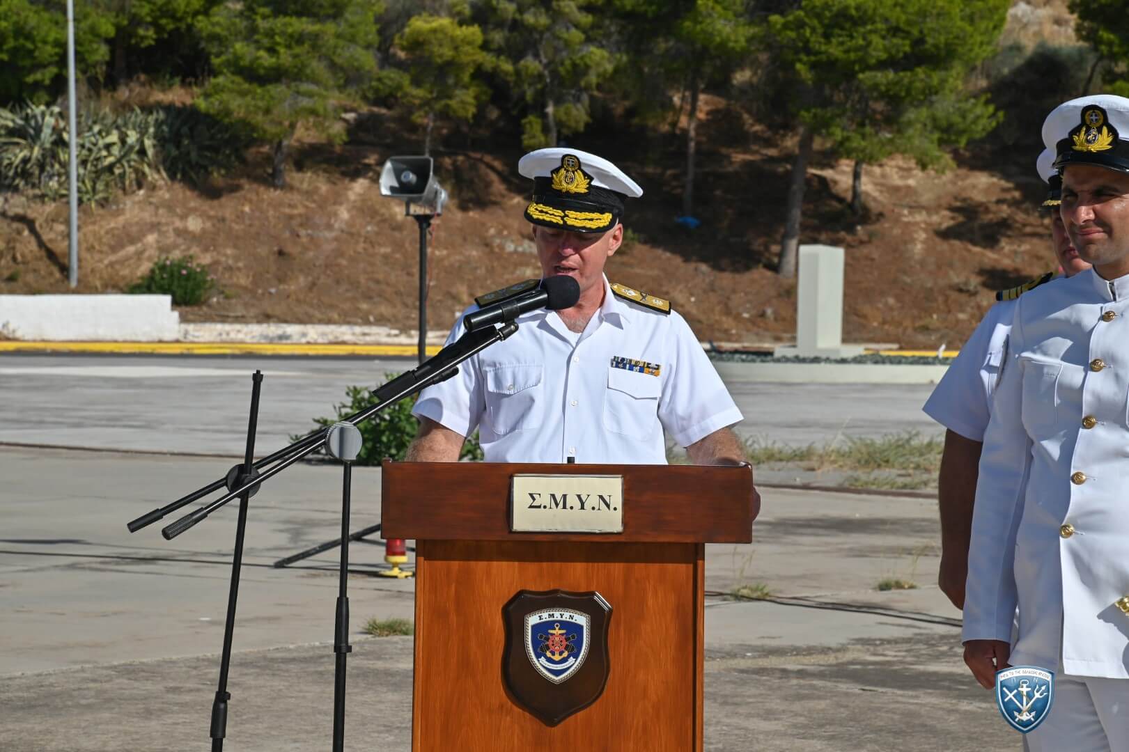 Στην τελετή απόπλου της ΣΜΥΝ, που πραγματοποιήθηκε σήμερα στο Ναύσταθμο Σαλαμίνας, έδωσε το παρών και ο Αρχηγός του Γενικού Επιτελείου Ναυτικού (ΓΕΝ) Αντιναύαρχος Δημήτριος-Ελευθέριος Κατάρας ΠΝ.