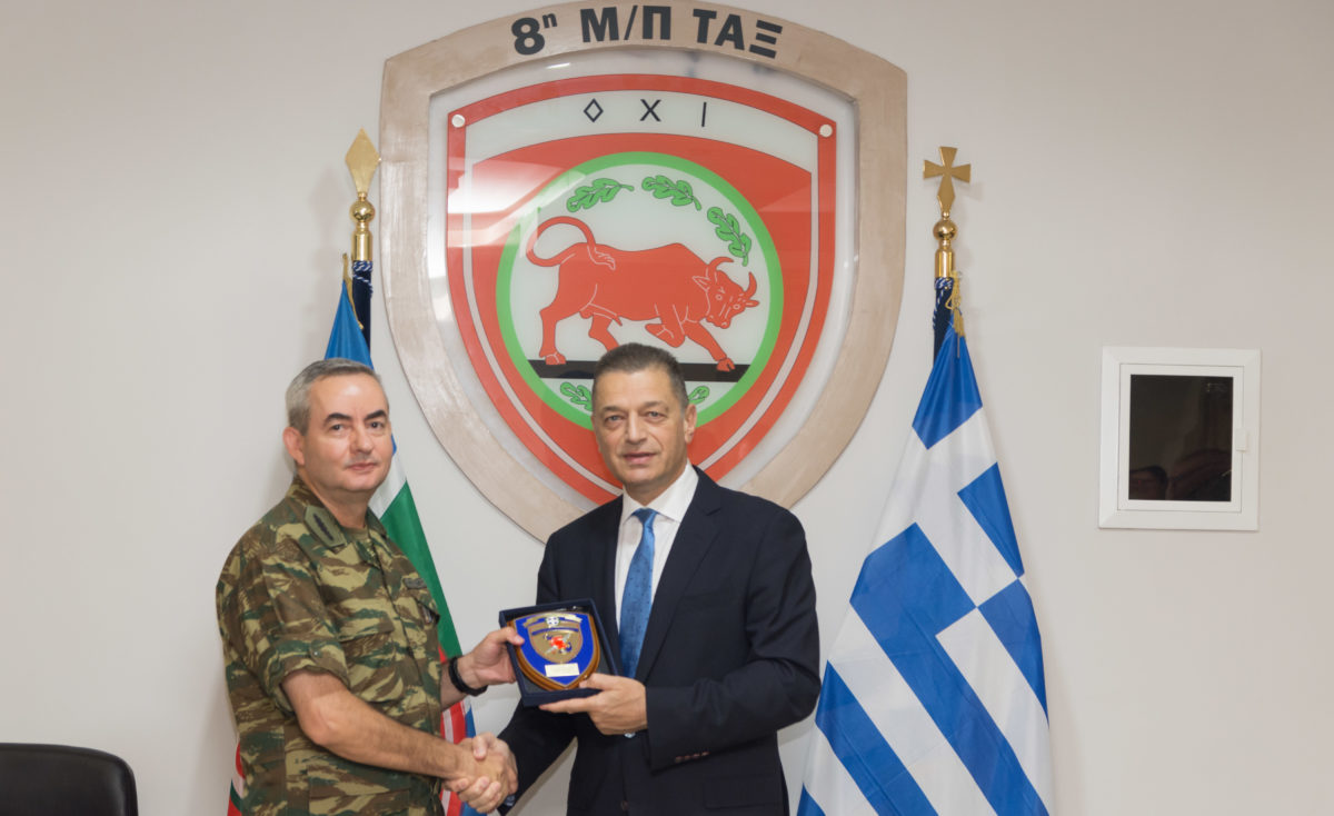 Ο Υφυπουργός, συνοδευόμενος από τον Διοικητή του Γ΄ Σώματος Στρατού/NRDC-GR, Αντιστράτηγο Κωνσταντίνο Κούτρα, επισκέφθηκε το Στρατηγείο της 8ης Μηχανοποιημένης Ταξιαρχίας, στα Ιωάννινα, όπου μετά τη σύντομη ενημέρωσή του, μίλησε στα στελέχη του Επιτελείου του Σχηματισμού και στους Διοικητές των Μονάδων που υπάγονται στην Ταξιαρχία.