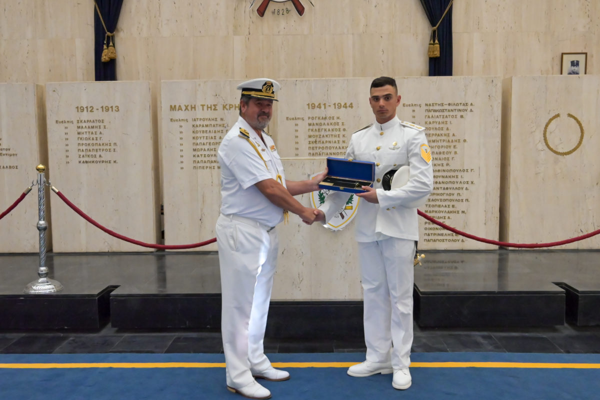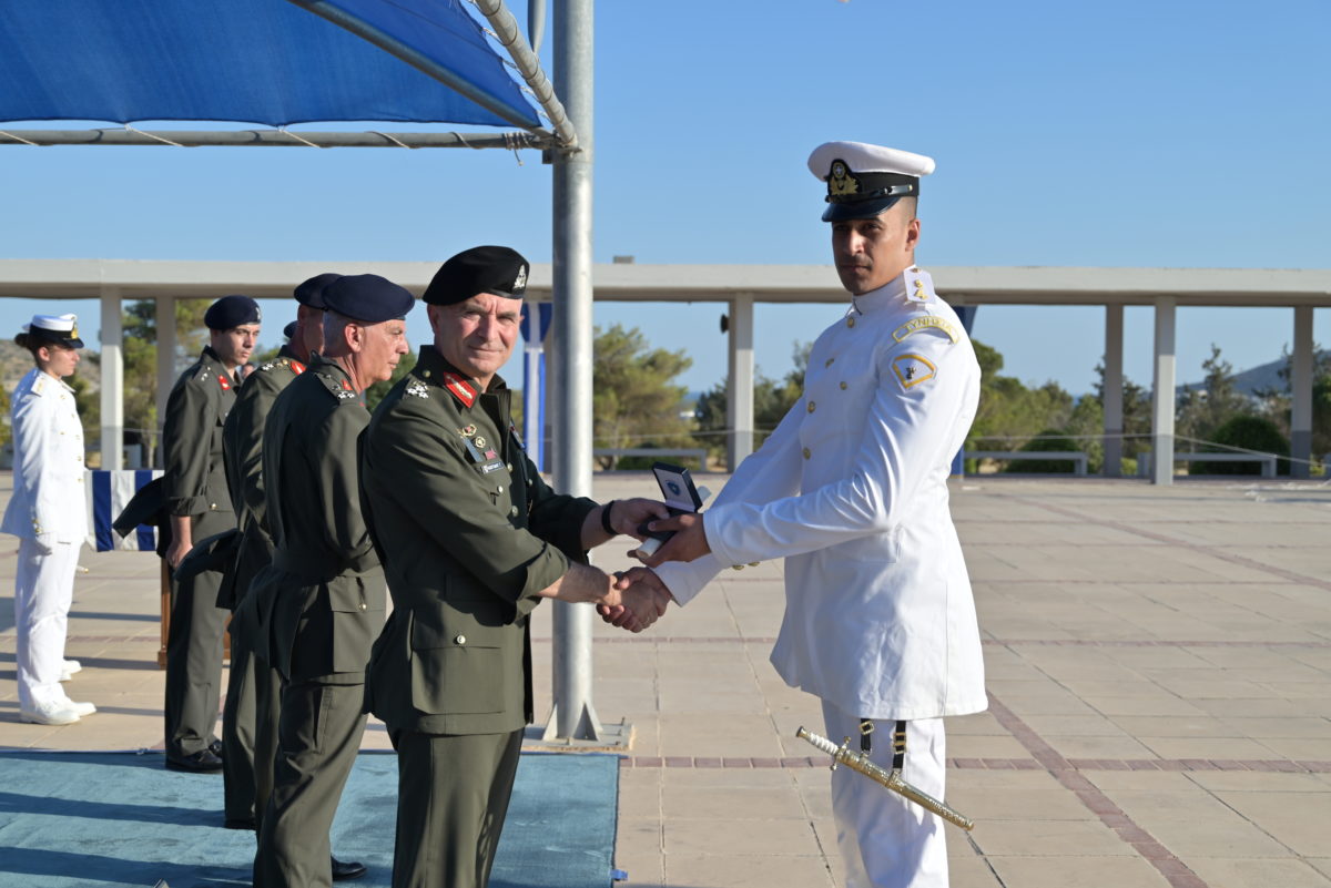 Τέλος ο Ισπανός Ακόλουθος Άμυνας (ΑΚΑΜ) Πλοίαρχος Federico Antonio Garcia Castro απένειμε το ξιφίδιο της Ισπανικής Ακαδημίας στον πρωτεύσαντα Εύελπι της Τάξης 2024.