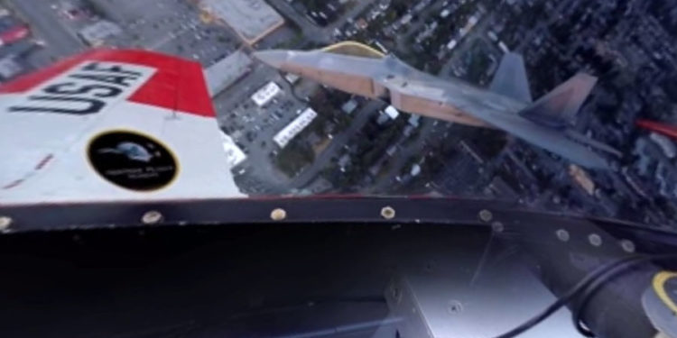 Η διπλή πτήση, λίγο πριν την ανατολή του ηλιου, δυο μαχητικων αεροσκαφών που τα χωρίζουν δυο διαφορετικές εποχές, εχει εντυπωσιάσει το κοινό. Ωστόσο δεν ειναι αυτο το γεγονός που εχει συναρπάσει. Πιο συγκεκριμένα το P-51 Mustang που κατασκευάστηκε στα μέσα του 20ου αιώνα και το F22 απο τις αρχές του 21ου αιώνα, εχουν μαγνητοσκοπηθεί και η τεχνολογία επιτρέπει στο θεατή να κοιτάξει 360 μοίρες σε οποιαδήποτε κατεύθυνση κατα την διάρκεια του βίντεο.