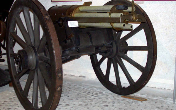 Η εφεύρεση του Γκατλινγκ ηταν ίσως και το πρώτο πραγματικό πολυβόλο με περίπου 700.50 γύρους το λεπτό. Το Gatling έχει εξι κάννες. Η κάθε κάννη φορτώνεται και πυρπολείται με πυρομαχικά που τρoφοδοτουνται στο όπλο μηχανικά.