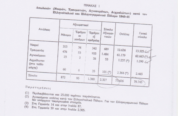 Το γιατί δεν είναι ένα είναι πολλά. 79.743 όσοι ήταν και οι νεκροί αξιωματικοί, υπαξιωματικοί και οπλίτες που έπεσαν από τα όπλα των Ιταλών φασιστών και των ναζί της Γερμανίας εκεί στα οχυρά Ρούπελ. Ο αριθμός προκύπτει από τα επίσημα στοιχεία του ΓΕΣ κι έχει αποτυπωθεί στον πίνακα που δημοσιεύουμε ο οποίος περιλαμβάνεται στην επίτομη ιστορία του ΓΕΣ.