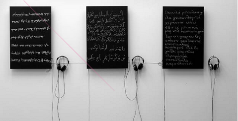Με τόλμη και ευαισθησία η 38χρονη καλλιτέχνης από την Κωνσταντινούπολη, μεταγράφει με κιμωλία σε τρεις μαυροπίνακες, τρεις σύντομες παραγράφους δικού της κειμένου στην τουρκική γλώσσα, χρησιμοποιώντας ξεχασμένα αλφάβητα της οθωμανικής περιόδου: το ελληνικό (καραμανλίδικα), το αρμενικό και το παλιό τουρκικό (αραβικό).