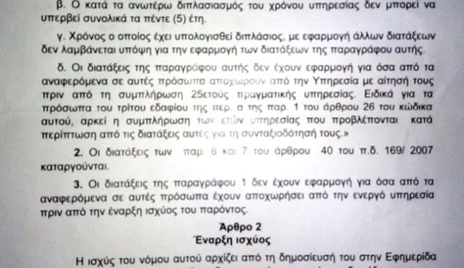 Αναφέρεται στη περιβόητη επιπλέον 5ετή συντάξιμη υπηρεσία που θα την λαμβάνουν άπαντες ανεξαρτήτως που έχουν υπηρετήσει μέχρι σήμερα.