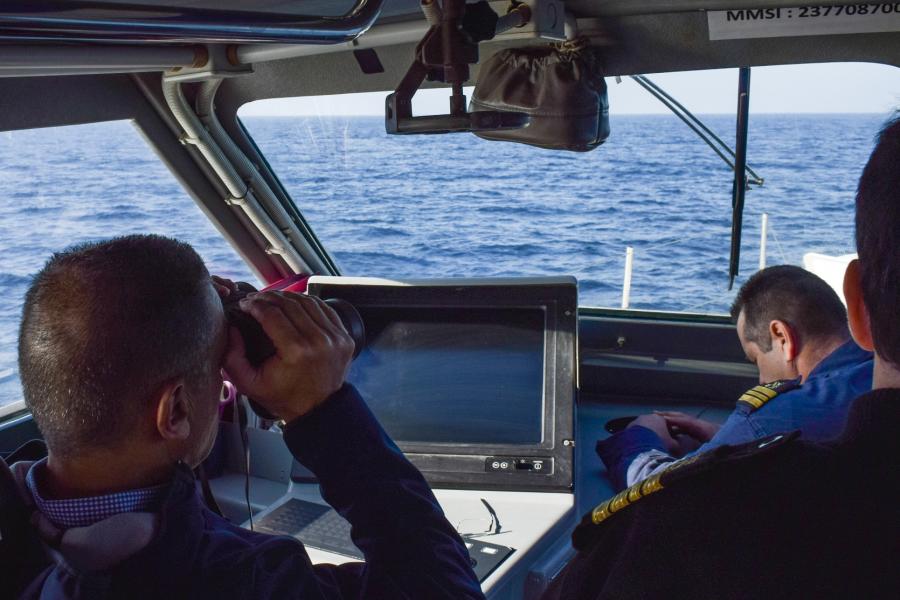 Περαιτέρω ενημερώθηκε και παρακολούθησε τις θαλάσσιες περιπολίες ημέρα και νύχτα με σκάφος του Λιμενικού Σώματος.