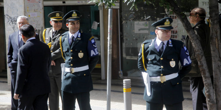 Πρώτη εμφάνιση για την “Αστυνομία Ενόπλων Δυνάμεων”. Στρατονομία ,Ναυτονομία και Αερονομία “συγχωνεύθηκαν” στην Αστυνομία Ενόπλων Δυνάμεων οι άνδρες της οποίας φορούν τις στολές που βλέπετε στη φωτογραφία. Μας διευκρίνησαν ότι το χρώμα των στολών είναι «βαθύ λαδί» πάντως στον φακό «γράφουν» πολύ μαύρες.