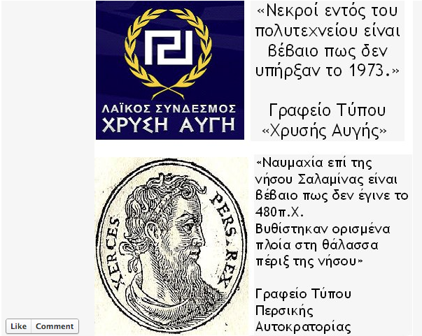 Αυτο το σατιρικό μοντάζ με τα δυο γραφεία τύπου, το ένα του Ξέρξη και το άλλο της Χρυσής Αυγης εχει κάνει τον γύρο του Facebook!