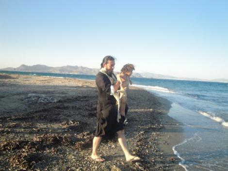 Ο μικρός βαφτίστηκε στη θάλασσα μπροστά στα ΚΑΑΥ Κω στο Σκανδάρι, από τον πάτερ Αναστάσιο.