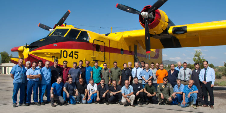 Στην φωτογραφία που δημοσιοποίησε η ΕΑΒ και ανάμεσα σε πιλότους της Πολεμικής μας Αεροπορίας βλέπουμε 35 από τους εργαζόμενους της κρατικής εταιρίας που εργάστηκαν για τα πυροσβεστικά αεροσκάφη την περίοδο της συντήρησής τους. <<Υπό την υπεύθυνη και συστηματική καθοδήγηση της Διοίκησης της εταιρείας, οι εργαζόμενοι πραγματικά υπερέβαλαν εαυτόν και ανταποκρίθηκαν με επιτυχία στην αποστολή τους. Τώρα, κλιμάκιο των εργαζομένων συνεχίζει το έργο της ΕΑΒ στην Ελευσίνα, για την καθημερινή υποστήριξη του έργου των πιλότων και γενικότερα του πυροσβεστικού σώματος>>, αναφέρει η λεζάντα, που συνεχίζει:<<Άλλοι 1.355 εργαζόμενοι της ΕΑΒ δεν φαίνονται στη φωτογραφία. Ωστόσο ο ρόλος τους ήταν και είναι εξίσου σημαντικός για την τήρηση των συμβατικών υποχρεώσεων της εταιρείας προς την Πολεμική μας Αεροπορία αλλά και τη διεθνή αγορά.Όλο το ανθρώπινο δυναμικό της εταιρείας –με αίσθημα υπερηφάνειας για την αποστολή του και συναίσθηση ευθύνης τόσο απέναντι στη συντεταγμένη Πολιτεία όσο και στους Έλληνες Πολίτες- μένει προσηλωμένο στο έργο του παρά τις όποιες αντικειμενικές δυσκολίες>>.