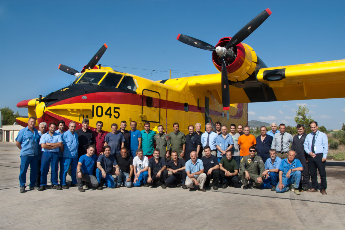 Στην φωτογραφία που δημοσιοποίησε η ΕΑΒ και ανάμεσα σε πιλότους της Πολεμικής μας Αεροπορίας βλέπουμε 35 από τους εργαζόμενους της κρατικής εταιρίας που εργάστηκαν για τα πυροσβεστικά αεροσκάφη την περίοδο της συντήρησής τους. <<Υπό την υπεύθυνη και συστηματική καθοδήγηση της Διοίκησης της εταιρείας, οι εργαζόμενοι πραγματικά υπερέβαλαν εαυτόν και ανταποκρίθηκαν με επιτυχία στην αποστολή τους. Τώρα, κλιμάκιο των εργαζομένων συνεχίζει το έργο της ΕΑΒ στην Ελευσίνα, για την καθημερινή υποστήριξη του έργου των πιλότων και γενικότερα του πυροσβεστικού σώματος>>, αναφέρει η λεζάντα, που συνεχίζει:<<Άλλοι 1.355 εργαζόμενοι της ΕΑΒ δεν φαίνονται στη φωτογραφία. Ωστόσο ο ρόλος τους ήταν και είναι εξίσου σημαντικός για την τήρηση των συμβατικών υποχρεώσεων της εταιρείας προς την Πολεμική μας Αεροπορία αλλά και τη διεθνή αγορά.Όλο το ανθρώπινο δυναμικό της εταιρείας –με αίσθημα υπερηφάνειας για την αποστολή του και συναίσθηση ευθύνης τόσο απέναντι στη συντεταγμένη Πολιτεία όσο και στους Έλληνες Πολίτες- μένει προσηλωμένο στο έργο του παρά τις όποιες αντικειμενικές δυσκολίες>>.