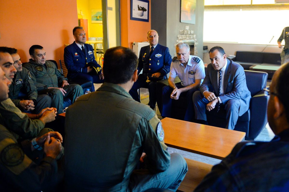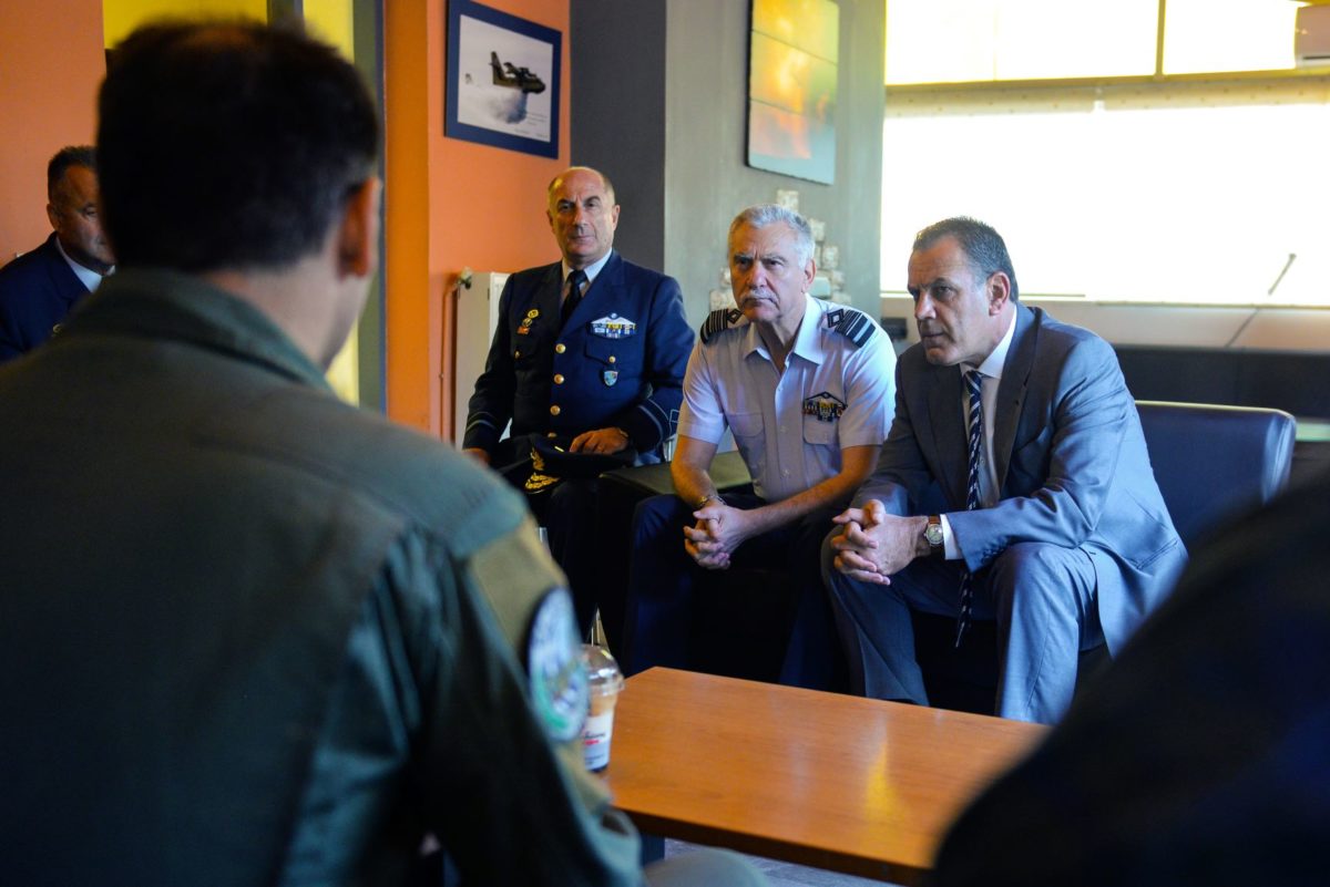 Ο Υπουργός Εθνικής Άμυνας, επισκέφθηκε την 355 Μοίρα Τακτικών Μεταφορών και συνομίλησε με τους πιλότους των πυροσβεστικών αεροσκαφών CL-415 και CL-215, οι οποίοι επιχείρησαν στις πυρκαγιές στην Εύβοια.