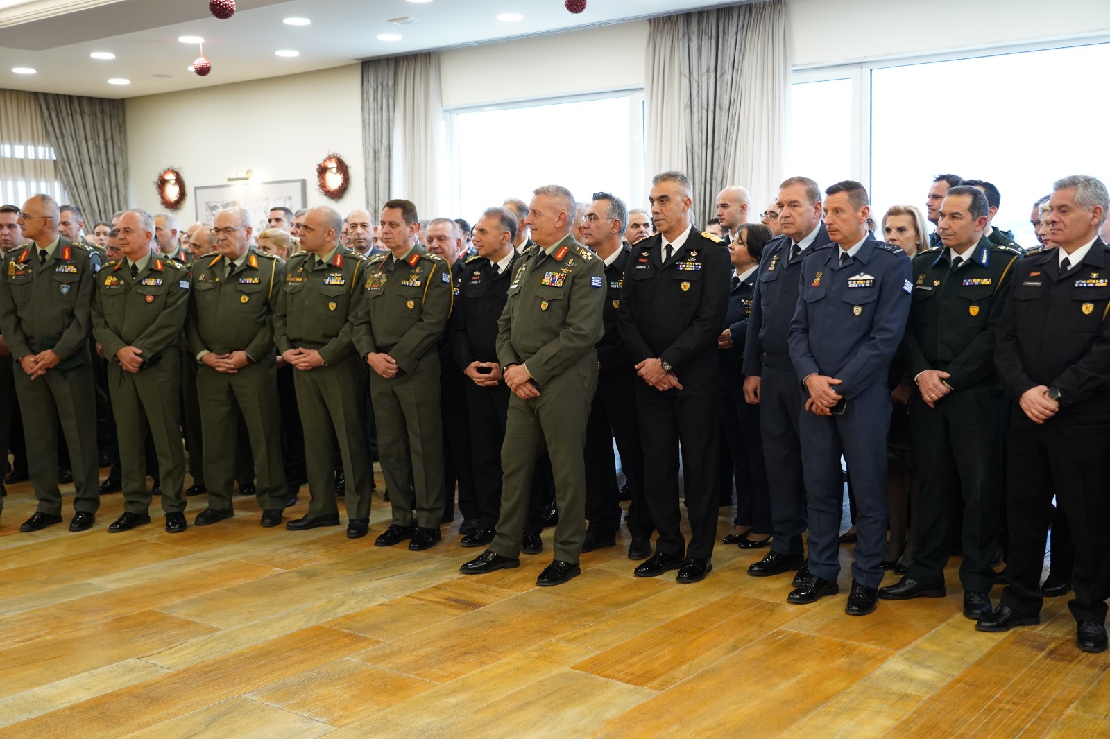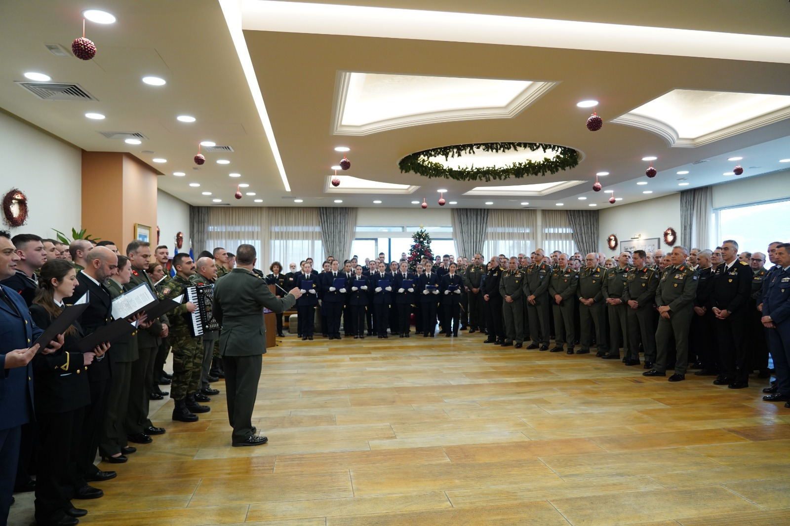 Στην συνέχεια ο Αρχηγός ΓΕΕΘΑ, αντάλλαξε ευχές με τον Αρχηγό ΓΕΣ Αντιστράτηγο Άγγελο Χουδελούδη, τον Αρχηγό ΓΕΝ Αντιναύαρχο Ιωάννη Δρυμούση ΠΝ, τον Διοικητή της Διοίκησης Ειδικού Πολέμου (ΔΕΠ) του ΓΕΕΘΑ Αντιστράτηγο Δημήτριο Χούπη, τον Υπαρχηγό ΓΕΕΘΑ Αντιναύαρχο Φραγκίσκο Λελούδα ΠΝ, τον Υπαρχηγό ΓΕΑ Υποπτέραρχο (Ι) Αντώνιο Πανίδη ως εκπρόσωπο του Αρχηγού ΓΕΑ Αντιπτεράρχου (Ι) Θεμιστοκλή Μπουρολιά, καθώς και τους Διευθυντές και Επιτελείς των Κλάδων και των Διευθύνσεων του ΓΕΕΘΑ, και άκουσαν παραδοσιακά Χριστουγεννιάτικα Κάλαντα από την Μικτή Χορωδία των Ενόπλων Δυνάμεων και την Χορωδία της ΣΑΝ.