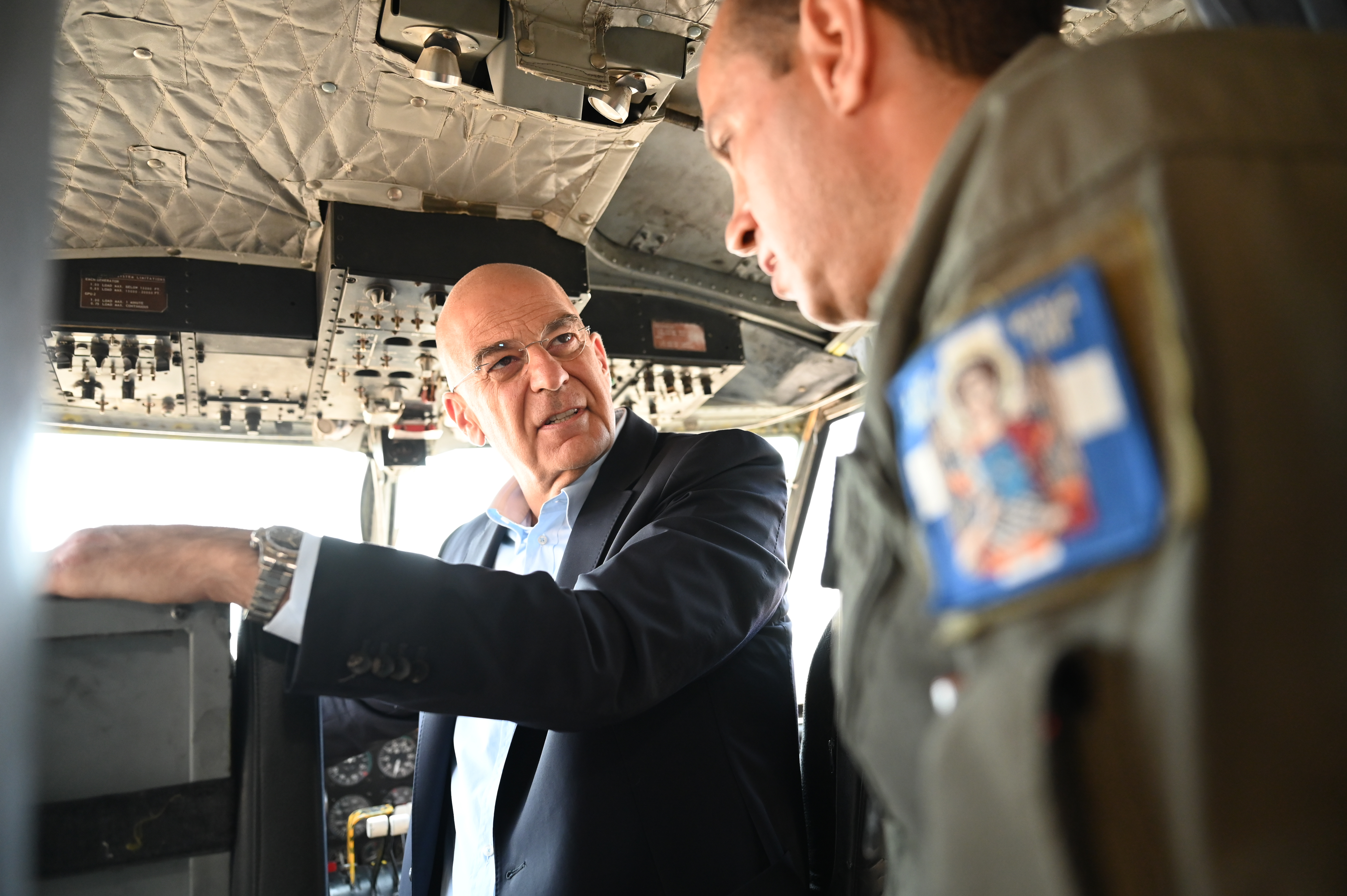 Ο Υπουργός Εθνικής Άμυνας Νίκος Δένδιας, συνοδευόμενος από τον Αρχηγό ΓΕΕΘΑ Στρατηγό Δημήτριο Χούπη και τον Αρχηγό ΓΕΑ Αντιπτέραρχο (Ι) Δημοσθένη Γρηγοριάδη, μετέβη σήμερα, Πέμπτη 25 Ιουλίου 2024, στην Αεροπορική Βάση Ελευσίνας, όπου πραγματοποίησε επίσκεψη στην 355 Μοίρα Τακτικών Μεταφορών (355 ΜΤΜ) της 112 Πτέρυγας Μάχης (112 ΠΜ).