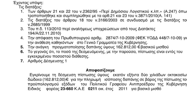 Mήπως θα μπορούσαν να μας εξηγήσουν από το επιτελείο του κ.Πάγκαλου τι είναι αυτά τα 162.812 ευρώ που αφορούν σε κάποιο βασικό μισθό;