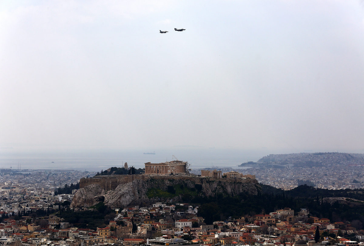 Συγκεκριμένα όπως ανακοίνωσε το Γενικό Επιτελείο Αεροπορίας, στις 12 το μεσημέρι, δυο F-16, ένα Mirage 2000 και δυο F-4, θα πραγματοποίησουν δοκιμαστική διέλευση πάνω από την πόλη.