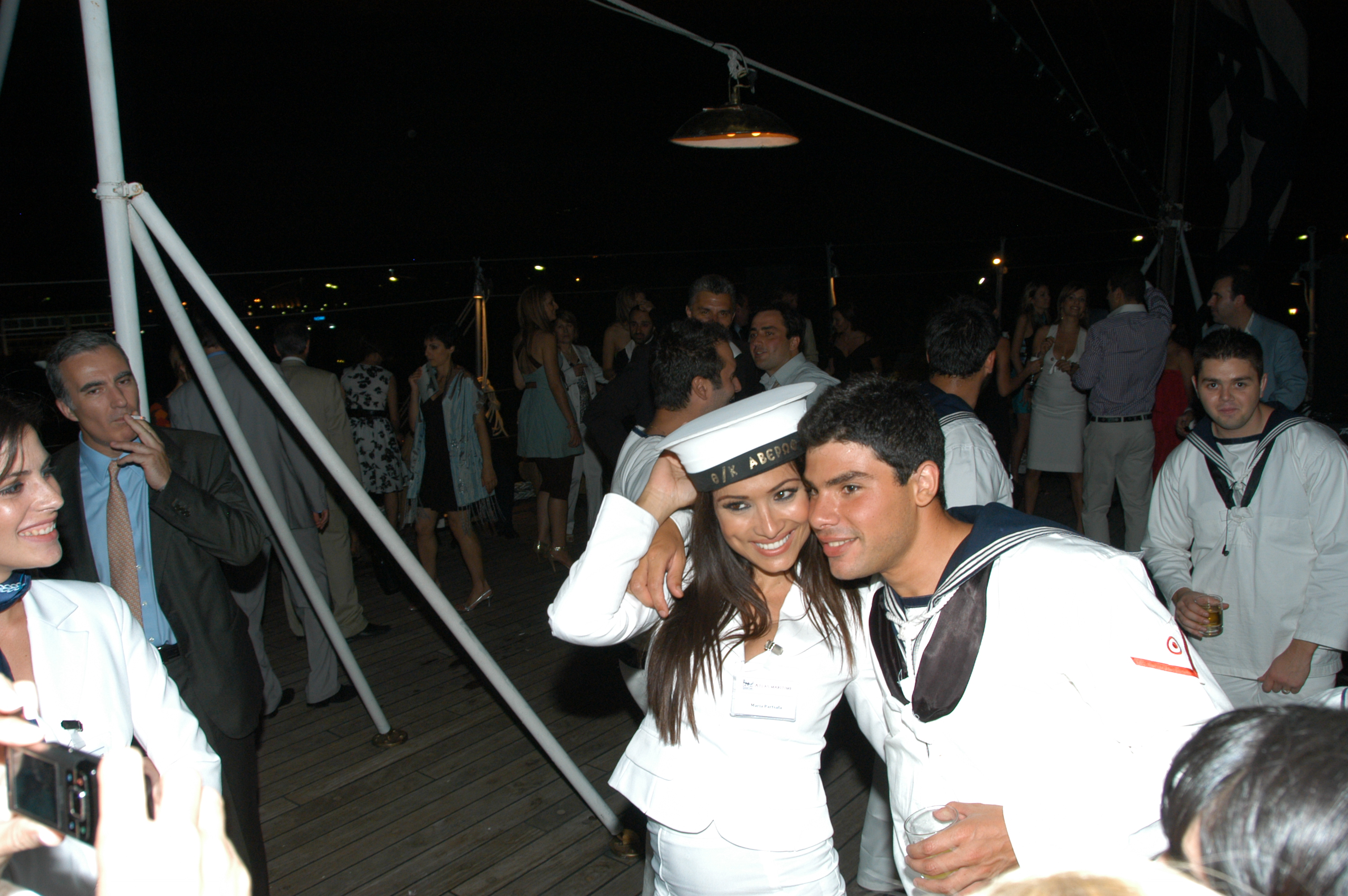 Ο χώρος ήταν στολισμένος με ανθοστήλες και γλάστρες ενώ είχε στηθεί μπουφές στον οποίο υπήρχαν κουφέτα. Οι φωτογραφίες από το γλέντι που έγινε στο κατάστρωμα του ιστορικού πλοίου έδειχναν ότι το κέφι είχε ξεπεράσει τα όρια που επέβαλε ο χώρος. Είναι βέβαιο ότι οι νεαρές αιθέριες υπάρξεις που είχαν προσκληθεί προφανώς για να ομορφύνουν το χώρο δεν είχαν ιδέα για το τι σημαίνει αυτό το πλοίο για την Ελλάδα και την ιστορία της. Ωστόσο αυτοί που τις είχαν καλέσει θα έπρεπε να γνωρίζουν.