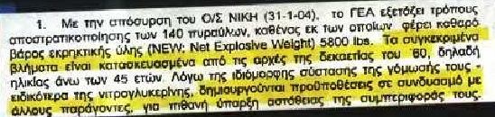 “Τα συγκεκριμένα βλήματα είναι κατασκευασμένα από τις αρχές της δεκαετίας του 60,δηλαδή ηλικίας άνω των 45 ετών. Λόγω της ιδιόμορφης σύστασης της γόμωσής τους -ειδικότερα της νυτρογλυκερίνης- δημιουργούνται προϋποθέσεις ,σε συνδυασμό με άλλους παράγοντες,για την πιθανή ύπαρξη αστάθειας της συμπεριφοράς τους”!