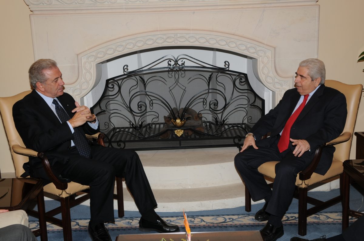 Συνάντηση με τον Πρόεδρο της Κυπριακής Δημοκρατίας κ. Δημήτρη Χριστόφια, είχε ο Υπουργός Εθνικής Άμυνας κ. Δημήτρης Αβραμόπουλος, κατά την δεύτερη μέρα της επίσημης επίσκεψης του στη Κύπρο. Οι κύριοι Χριστόφιας και Αβραμόπουλος συζήτησαν όλο το φάσμα των ελληνοκυπριακών θεμάτων.