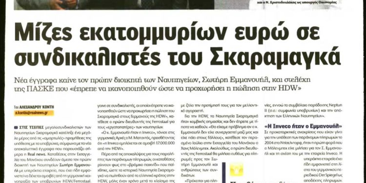 Οι συνδικαλιστές σύμφωνα με τις καταθέσεις που υπάρχουν έπρεπε να ικανοποιηθούν ώστε να προχωρήσει η πώληση των ναυπηγείων προς τους Γερμανούς. Ανταγωνιστές τότε ήταν οι Γάλλοι.